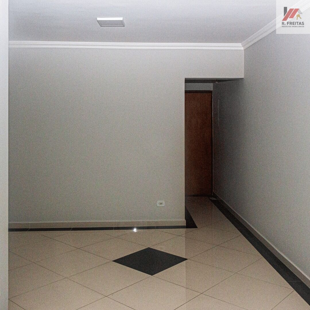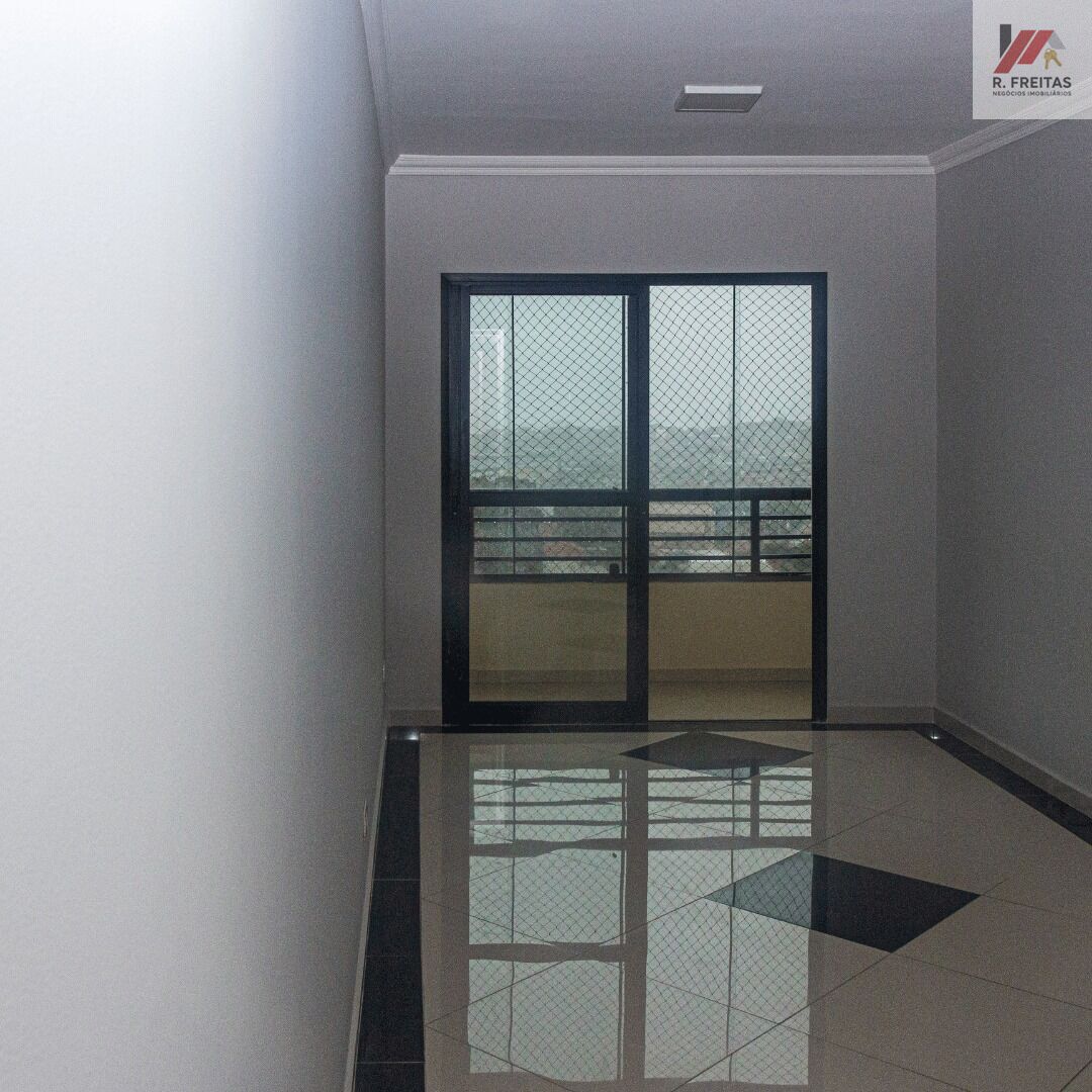 Descrição: 03 dormitórios (sendo um, suíte), sala com varanda, fechamento em vidro, cozinha, banheiro social, área de serviços com armário e mais um banheiro e duas vagas de garagem.
