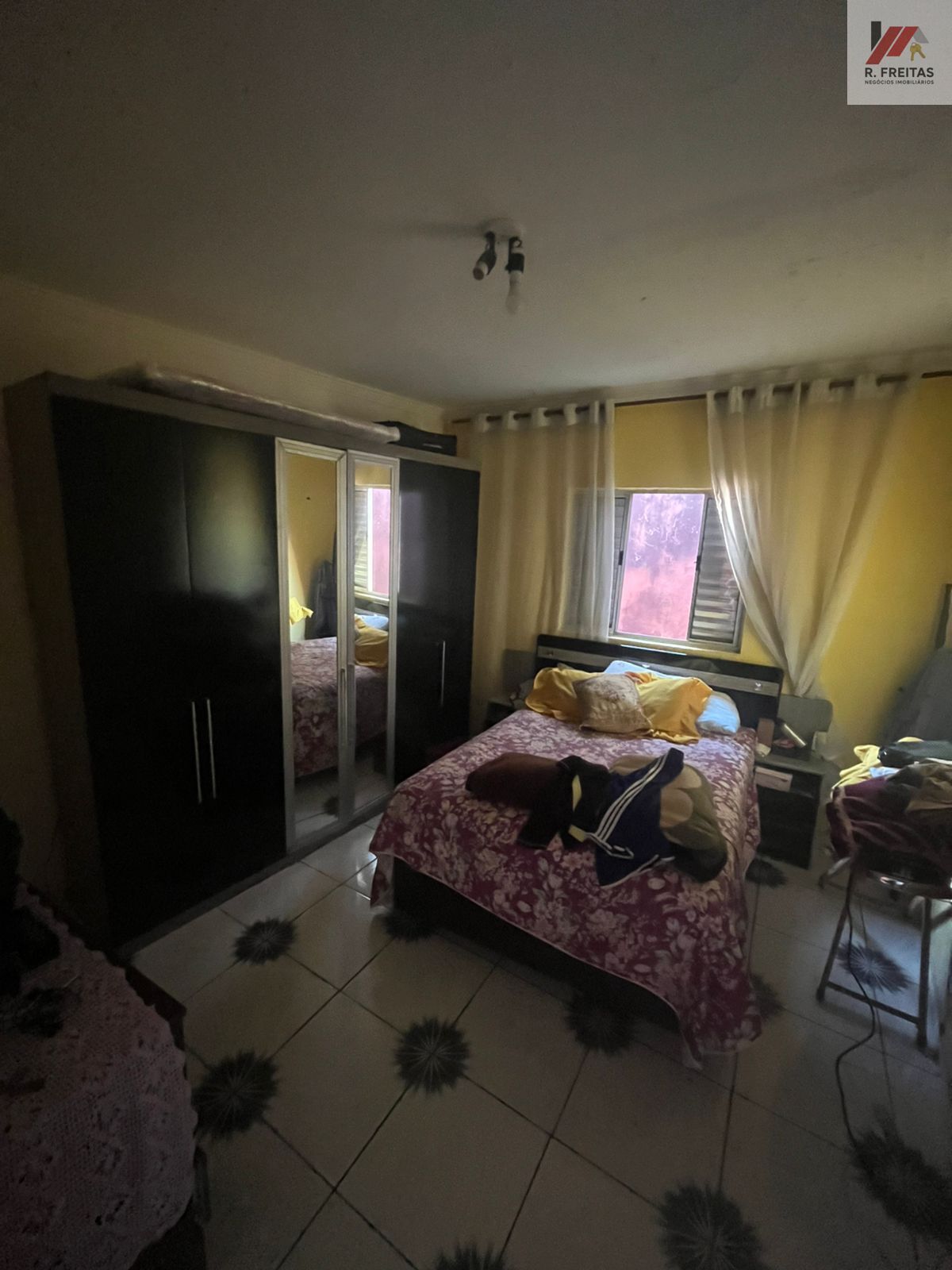Casa 2: 1 quarto, sala, cozinha, banheiro e área de serviços.