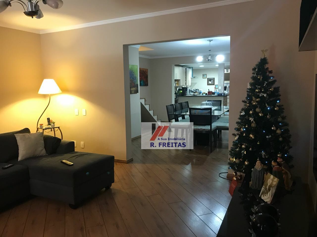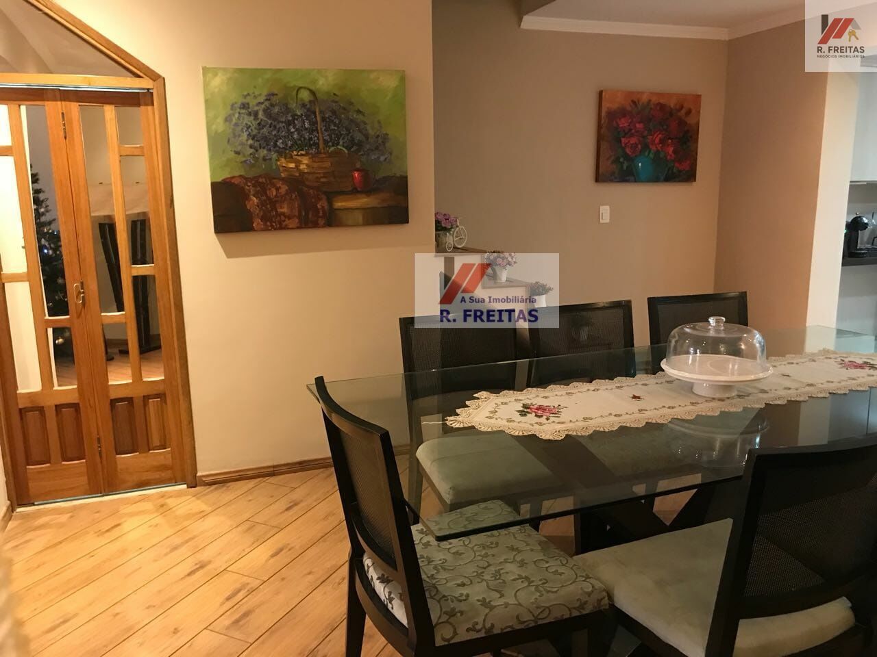 DESCRIÇÃO: 03 dormitórios, sala de estar, sala de jantar, cozinha, banheiros, lavabo, área de serviços, varanda, e duas vagas de garagem coberta.